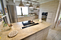 On aperçoit dans la première habitation un grand séjour lumineux de 29 m² ainsi qu'une cuisine américaine, nous retrouvons également trois chambres dont une de plain-pied et enfin deux salles d'eau.