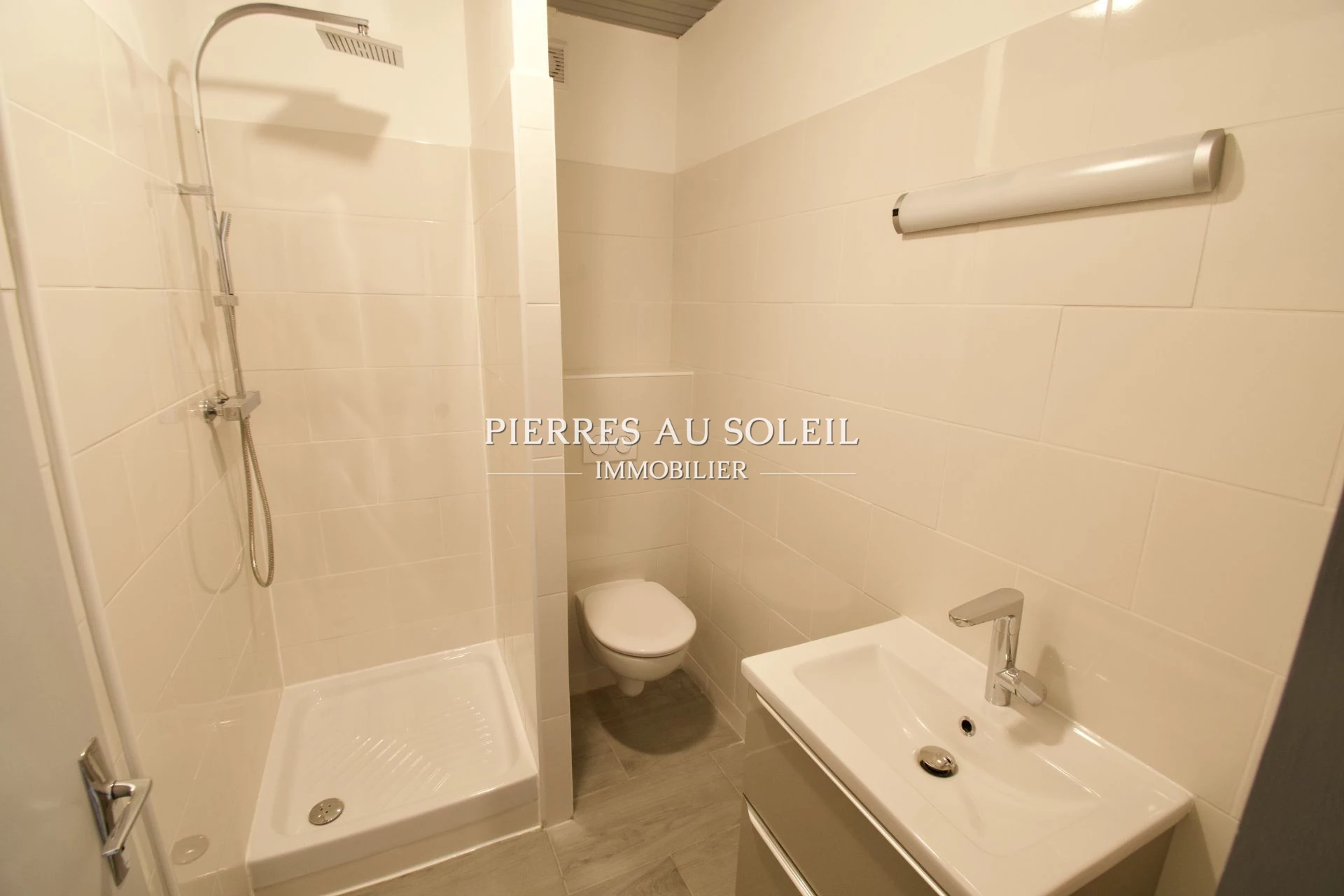 Ce bien comprend un séjour lumineux, une cuisine américaine équipée, une salle de douche moderne ainsi qu'une chambre avec placard.