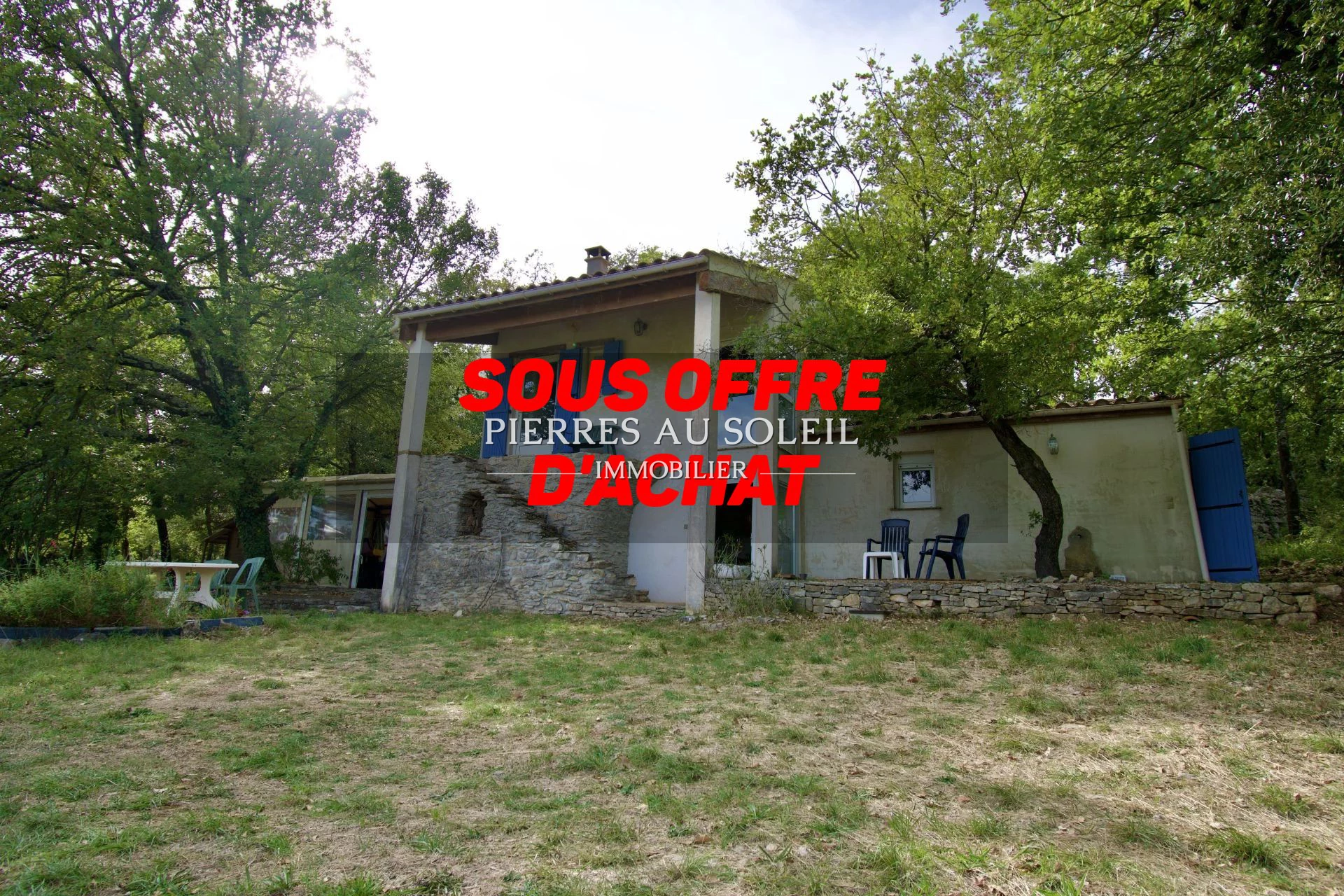Le bien dispose d'une piscine hors-sol et d'un forage individuel sur un grand terrain plat et dégagé sur les massifs montagneux.